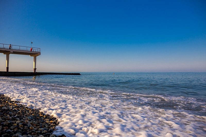 Санаторий располагает собственным оборудованным пляжем, где гости могут насладиться купанием в Чёрном море, солнечными ваннами и разнообразными водными развлечениями.