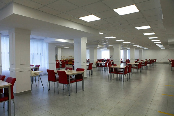 Гости проживающие в корпусах «Дельфин» и «Нептун» питаются в столовой расположенной на 2-м этаже корпуса «Дельфин».