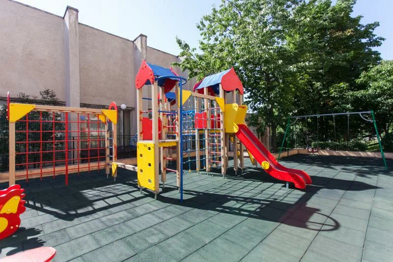 Для детей. Работает детская комната (с 4 лет), на улице — летняя площадка. Анимационные занятия, творчество и подвижные игры помогают занять ребенка, пока взрослые проходят процедуры. Плавание для детей — в сопровождении родителей (с установленного возраста).