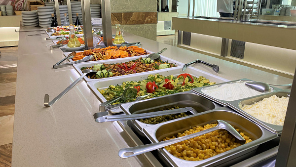 В санатории «Бирюза» питание организовано по системе «шведский стол». Трижды в день гостям подают разнообразные блюда, приготовленные из свежих и качественных продуктов. Меню сбалансировано и включает всё необходимое для полноценного рациона — горячие и холодные закуски, мясные и рыбные блюда, свежие овощи и фрукты, выпечку и десерты.