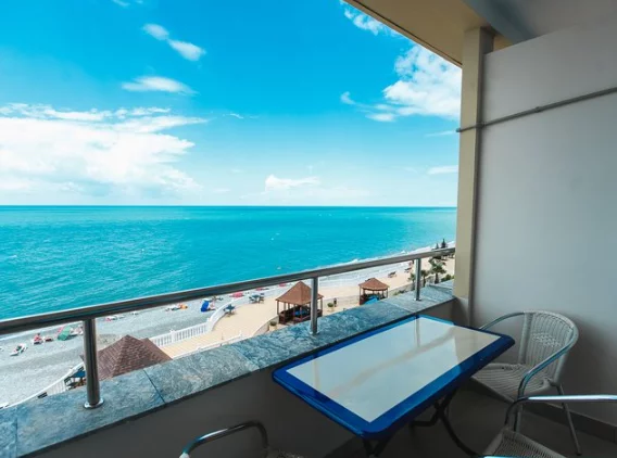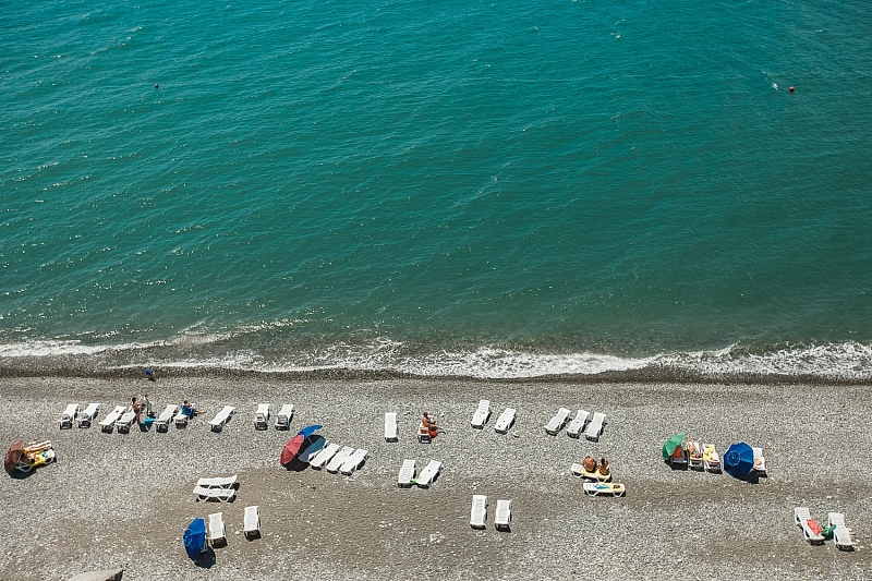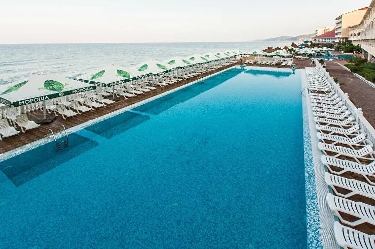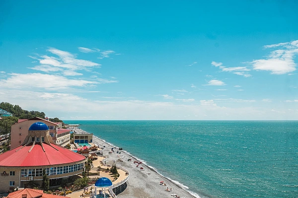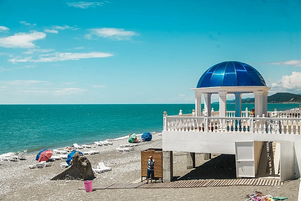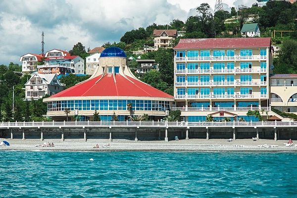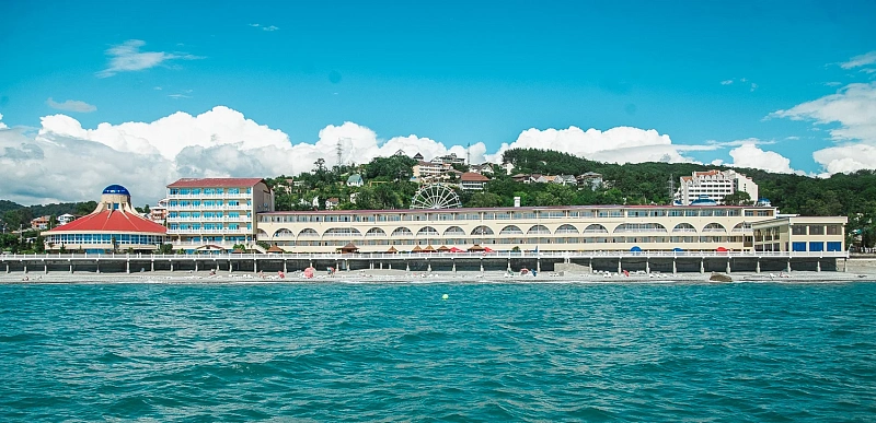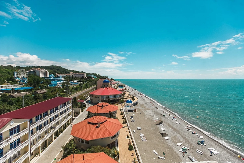 Собственный мелкогалечный пляж комплекса находится всего в 10-25 метрах от корпусов. Гостям предоставляются зонтики и лежаки для комфортного отдыха. На пляже доступны разнообразные водные развлечения: катание на гидроциклах, катамаранах, полеты на парашютах, а также морская рыбалка и прогулки на катерах.