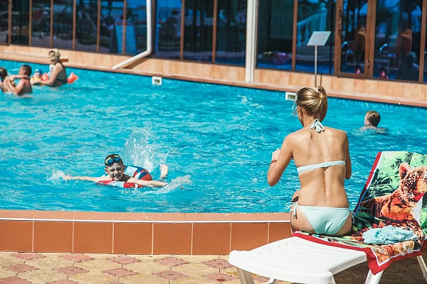 - пользование бассейнами ( крытым с марта по июнь и с октября по декабрь, открытыми с июня по сентябрь)