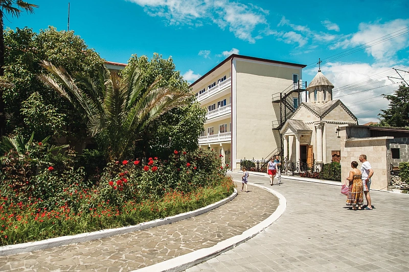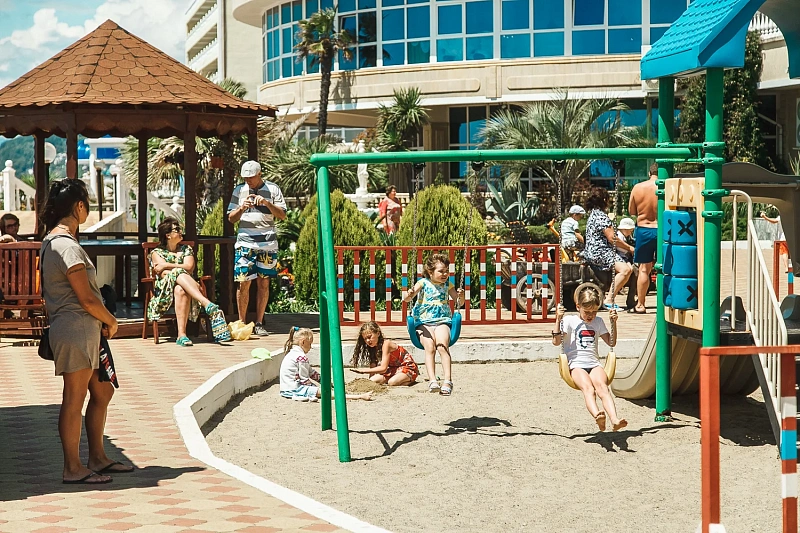 Территория санатория благоустроена и полностью оснащена для комфортного отдыха: гости могут наслаждаться прогулками по тенистым аллеям, отдыхать у бассейнов, посещать медицинские процедуры и участвовать в разнообразных досуговых мероприятиях.