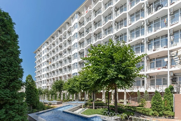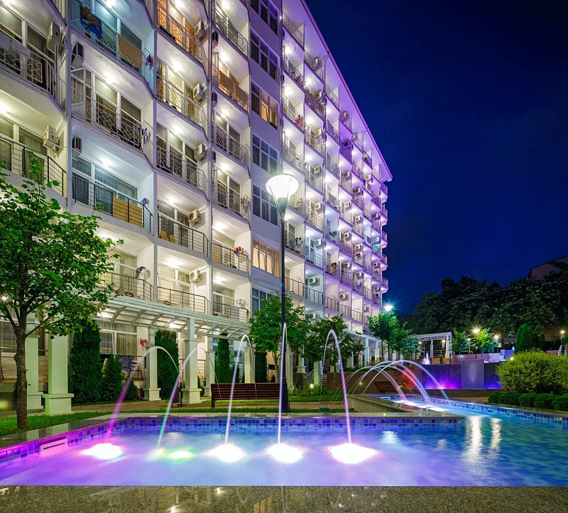 Пляж — «сердце» комплекса. Собственный, оборудованный, первой категории: шезлонги и тенты, душевые и кабинки, детская зона с песком и горками, пространство для пляжных игр. Те, кто предпочитает бассейн, оценят сочетание открытых сезонных чаш и крытого бассейна: у воды — зоны релакса, рядом — бар и места для тихого отдыха с книгой. По набережной удобно выходить на длительные прогулки и пробежки, встречать рассветы и закаты, кататься на велосипедах или самокатах.