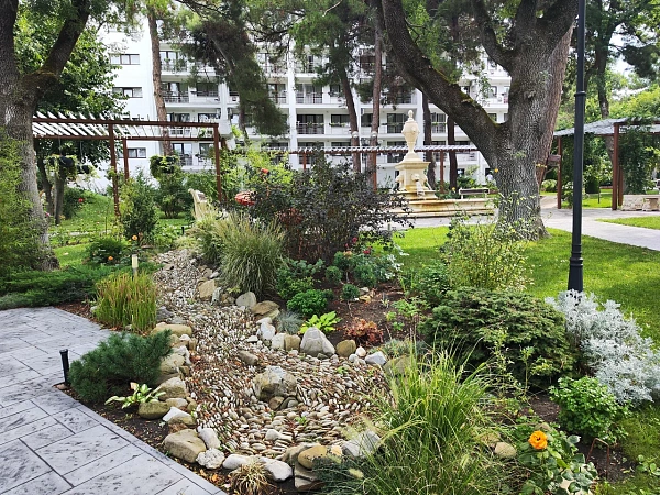 Номерной фонд рассчитан на приём большого количества гостей и предлагает разные категории размещения: от функциональных «стандартов» для пар и одиночных путешественников до более просторных семейных вариантов. Во многих номерах продуманы балконы и планировки для длительного проживания — удобно, если вы приезжаете на курс лечения. Внутри — современное оснащение, комфортные кровати, места для хранения, рабочая зона и климат-контроль; акцент сделан на тишину и полноценный отдых после активного дня у моря.