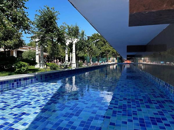 - Открытые сезонные бассейны с зонами шезлонгов — для тех, кто предпочитает спокойную воду и отдых «у бортика».