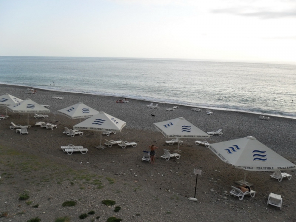 Территория пансионата включает благоустроенный частный пляж, покрытый мелкой галькой. Пляж оборудован всем необходимым для комфортного отдыха гостей: шезлонгами, зонтиками и кабинками для переодевания. Вдоль пляжа расположены кафе и бары, где можно насладиться прохладительными напитками или легкими закусками. Для любителей активного отдыха на пляже предлагаются водные аттракционы, прокат катамаранов, каяков и возможность арендовать оборудование для дайвинга.