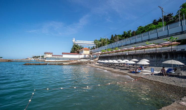Санаторий находится рядом с Черным морем, и гости могут наслаждаться пляжным отдыхом, не покидая территории. Пляж оборудован удобными шезлонгами и зонтиками, а также душевыми и кафе с освежающими напитками. Для удобства гостей санаторий организует трансфер на пляж несколько раз в день, что делает доступ к морю еще более комфортным.