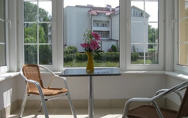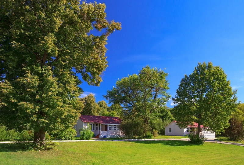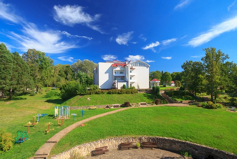 Размещение организовано в двух капитальных корпусах, коттедже и летних домиках. Основной корпус объединяет ключевую инфраструктуру: здесь же — лечебные кабинеты, залы ЛФК и столовая. Территория ухоженная, с аллеями и природными видами на окский берег: вокруг — «живая» атмосфера старинной усадьбы, приглашающая к прогулкам и размеренному отдыху.