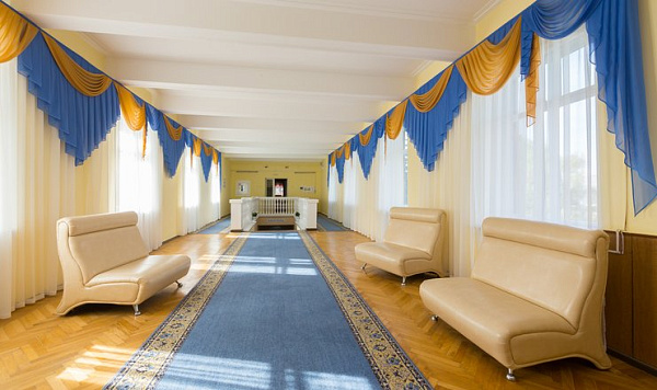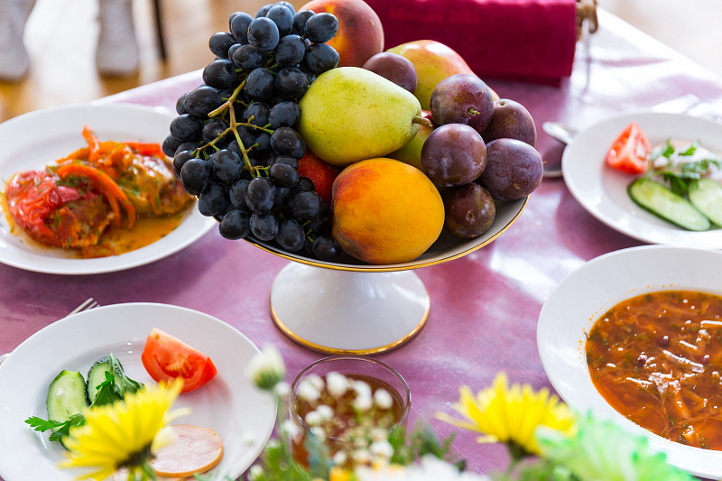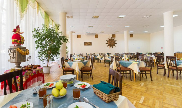 - Столовая: просторный и светлый зал, оформленный в двух цветовых решениях — «красный» и «зелёный». Здесь гостям предоставляется трёхразовое питание с возможностью выбора блюд по системе «меню-заказ». В меню представлены наваристые супы, рассыпчатые гарниры, оригинальные рецепты приготовления мяса и рыбы, витаминные салаты и всегда свежая выпечка. Вежливый персонал готов ответить на вопросы о составе каждого блюда и учесть индивидуальные пожелания гостей.