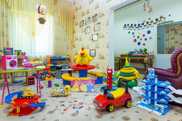 - Детская комната: оборудованная игровая зона для детей с лабиринтом, горкой и развивающими играми под присмотром воспитателя.