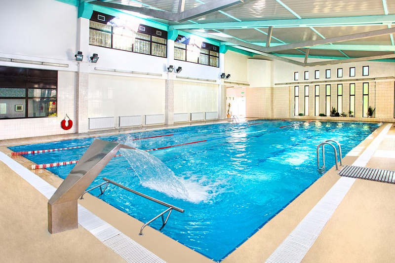 - Крытый бассейн: с подогреваемой пресной водой, размером 25×10 метров, работает круглогодично.