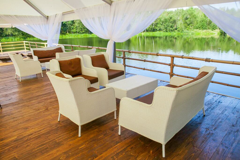 - Пирс (шатёр): расположен на берегу Живагинского пруда. Обслуживание по меню a-la carte, идеально для романтического ужина или особого случая.