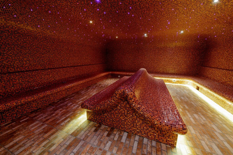 - Термальный СПА-комплекс — включает 10 бассейнов и 17 термальных комнат. В комплексе доступны хаммам, кофейная сауна, кело-баня, арома-сауна и гидромассажные ванны.