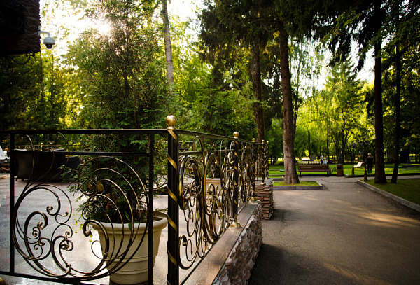 Комплекс занимает просторную территорию с благоустроенными дорожками, местами для прогулок, спортивными площадками и зонами отдыха. Архитектурный стиль отеля сочетает в себе современный дизайн и комфорт, создавая уютную атмосферу. Особенностью парк-отеля является концепция «Всё включено», позволяющая гостям наслаждаться отдыхом, не беспокоясь о дополнительных расходах.