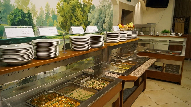 В рацион включены блюда из свежих овощей и фруктов, круп, мяса, рыбы, молочных продуктов. Можно выбрать как стандартное, так и диетическое питание, а также специальное лечебное питание при определённых медицинских показаниях. Для маленьких гостей предусмотрены удобные условия в зале питания и адаптированные блюда.