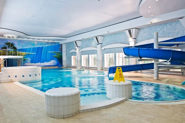 На территории работает крытый бассейн с отдельной детской зоной. Есть тренажёрный зал, спортивный и теннисный залы, открытые спортивные площадки. Гостям доступен прокат велосипедов, настольный теннис, а летом — отдых на собственном пляже и прогулки по лесным маршрутам.