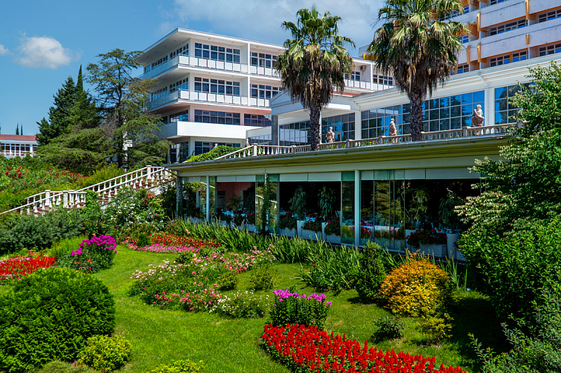 Санаторий расположен в шаговой доступности от Черного моря, а его собственный оборудованный пляж протяжённостью 380 метров делает отдых особенно комфортным. Удобное местоположение рядом с международным аэропортом Сочи (3 км) и железнодорожной станцией Адлер (3,5 км) обеспечивает лёгкий доступ для гостей из любого региона.
