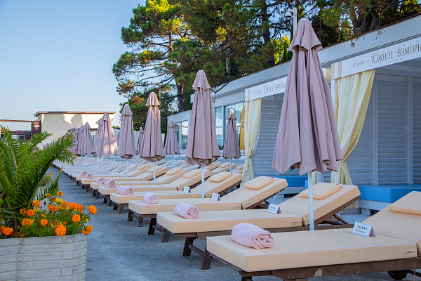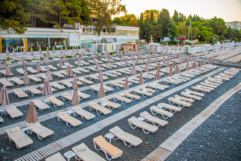 - Собственный оборудованный пляж с лежаками, зонтами и возможностью заняться водными видами спорта.