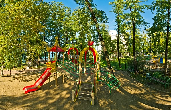 - Детская площадка — включает качели, горки и лазалки.